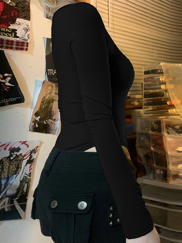 Lace U Neck Bow Long Sleeve Bodysuits