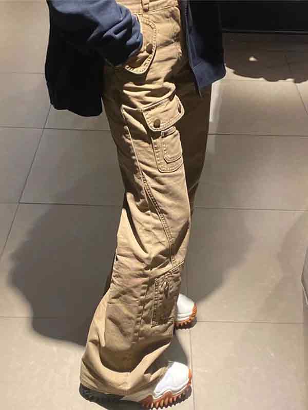 Multi-Pocket Flared Straight Cargo Pants